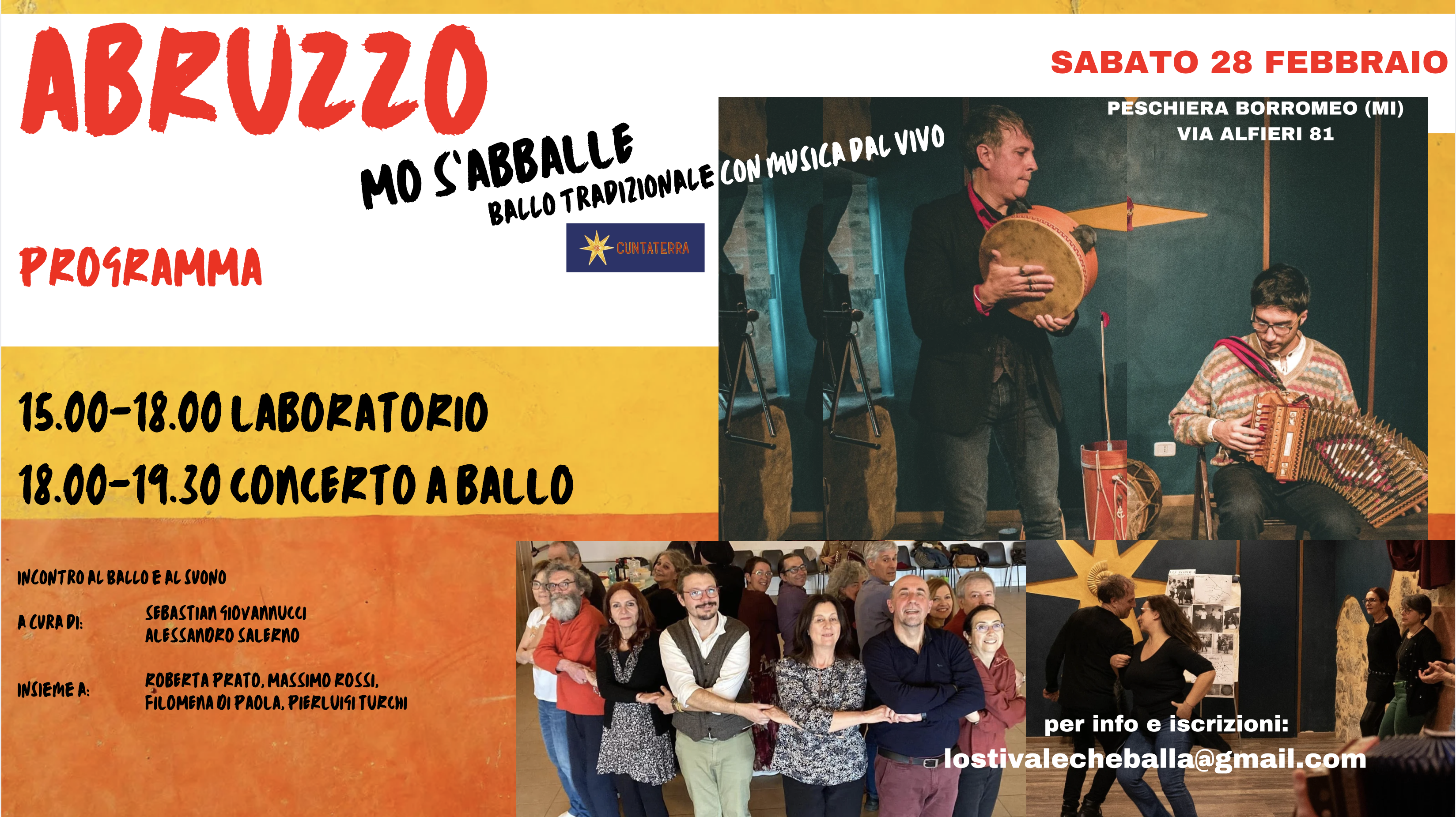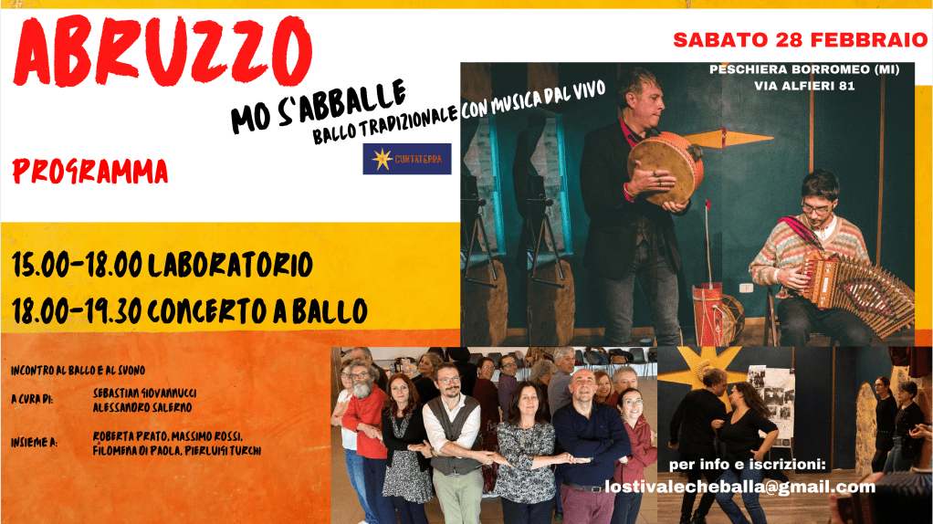 Incontro sui balli tradizionali dell’Abruzzo con un gruppo di suonatori e ballerini che con grande passione trasmettono i suoni e le danze della propria terra.